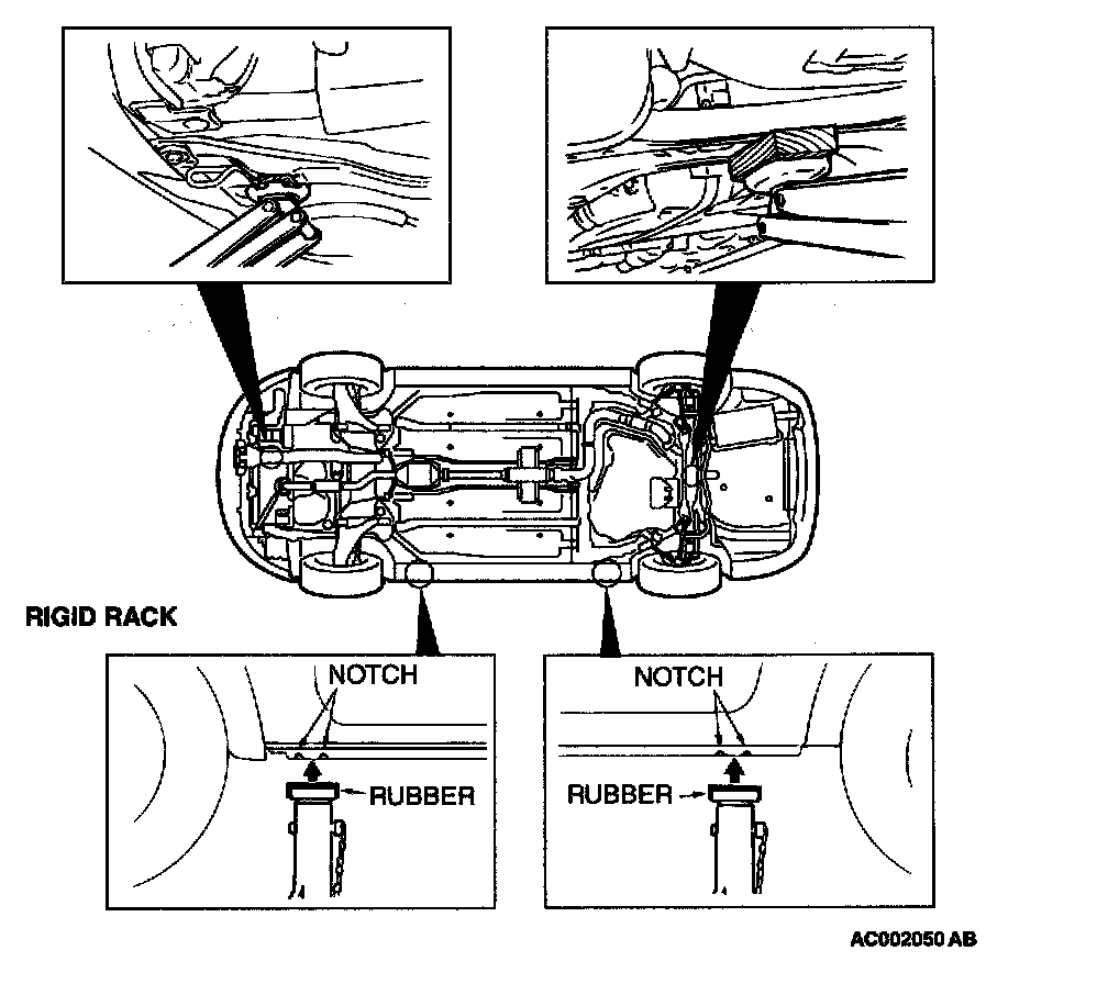 - For lifting, put rubber or similar material between the side sill and rigid rack, or the side sill area will be damaged.