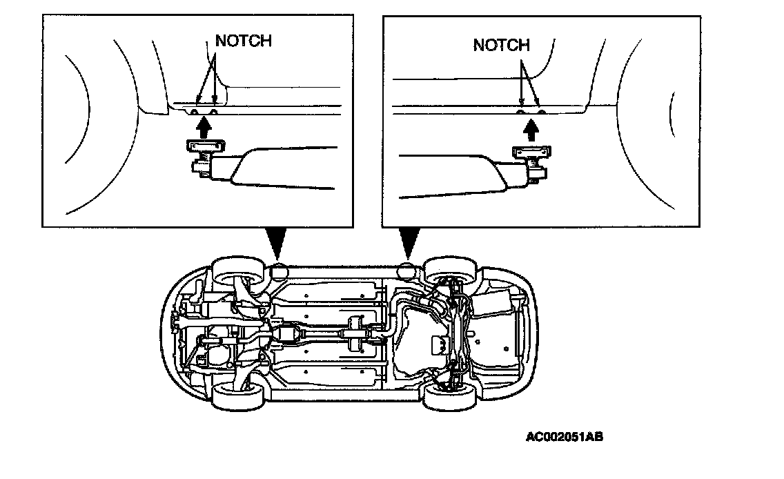 Special care should be taken when raising the vehicle on a frame contact type hoist. The hoist must be equipped with the proper adapters in order to support the vehicle at the proper locations.