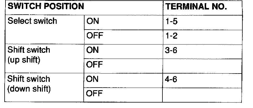 SHIFT SWITCH ASSEMBLY CONTINUITY CHECK