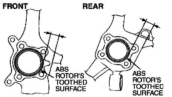 The clearance between the wheel speed sensor and the ABS rotor's toothed surface is not adjustable, but measure the distance between the sensor installation surface and the ABS rotor's toothed surface.