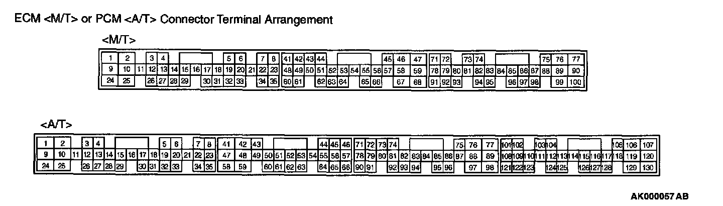 ECM <M/T> Or PCM <A/T> Connector Terminal Arrangement: