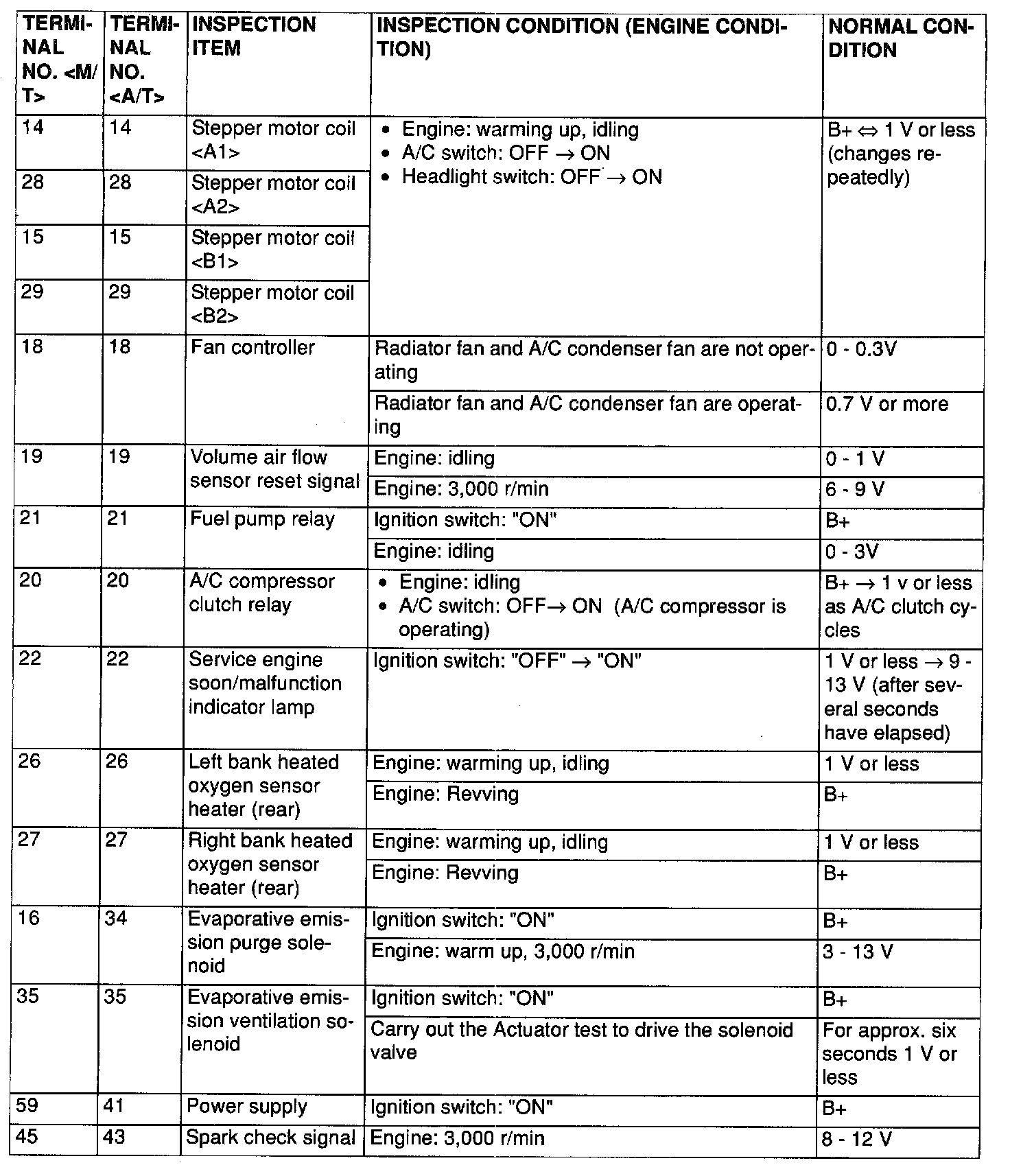 Terminal Voltage Check Chart ( Part 4 Of 5 ):