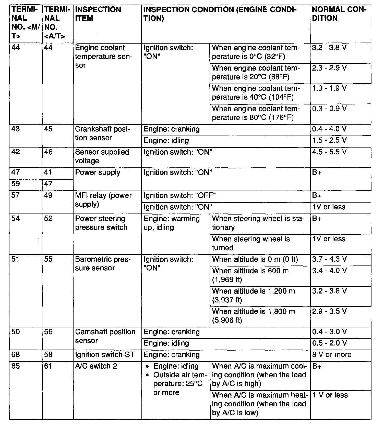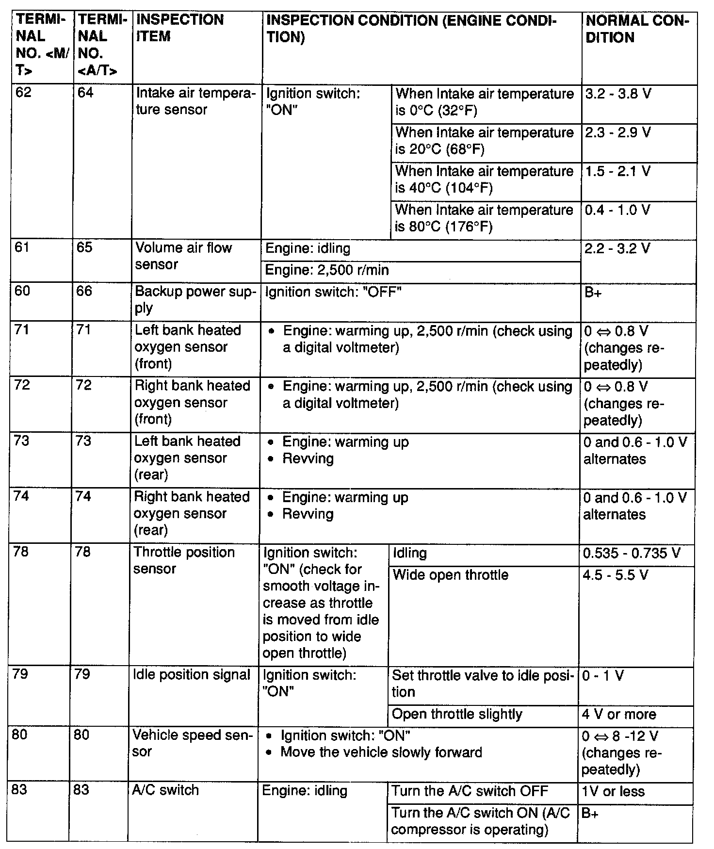 Terminal Voltage Check Chart ( Part 5 Of 5 ):