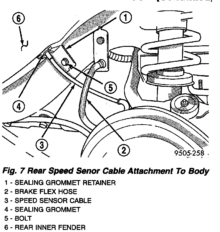5. Remove speed sensor harness sealing grommet retainer from the rear frame rail of the vehicle.