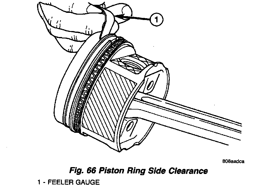 2. Check piston ring to groove side clearance (Fig. 66). Refer to Specifications.