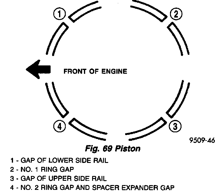 5. Position piston ring end gaps as shown in (Fig. 69).