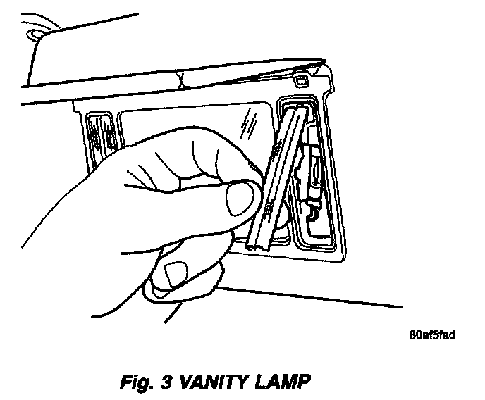 REMOVALThe vanity lamp is incorporated into the visor assembly. If the vanity lamp needs to be replaced, the entire visor must be replaced. The bulbs are serviced separately.