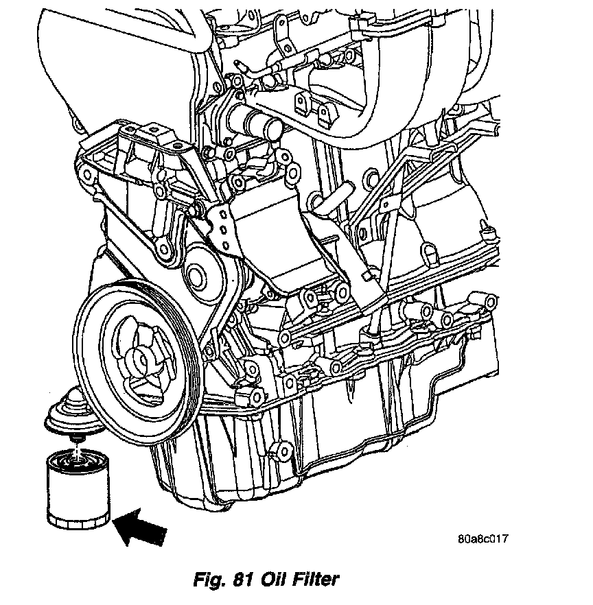 (Fig. 81) is a high quality full flow, disposable type. Replace the oil filter with a Mopar or the equivalent.