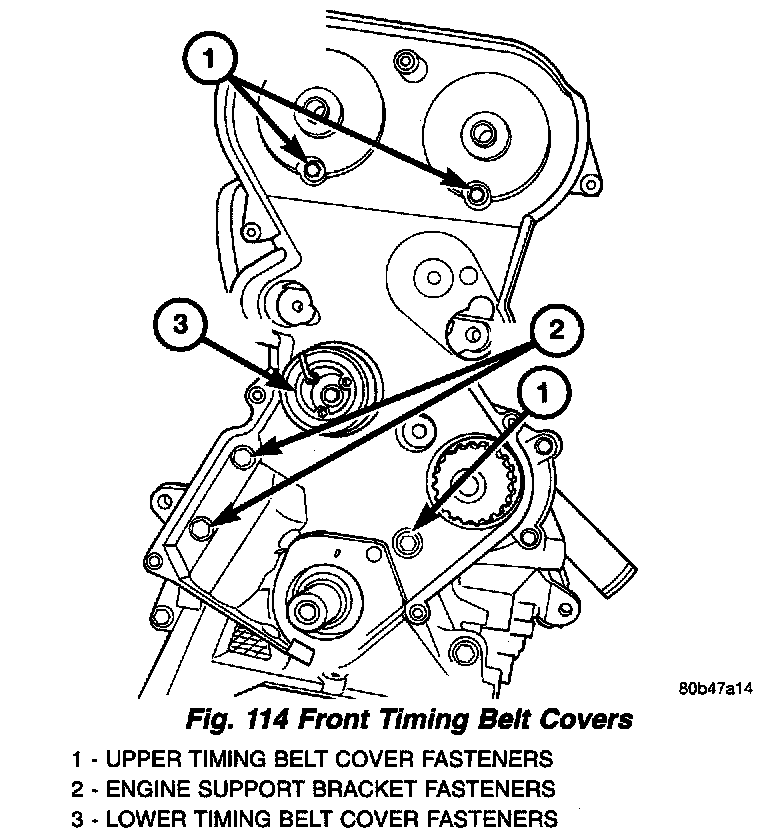 8. Remove upper and lower timing belt covers (Fig. 114).