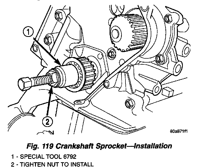 1. Install crankshaft sprocket using Special Tool 6792 (Fig. 119).