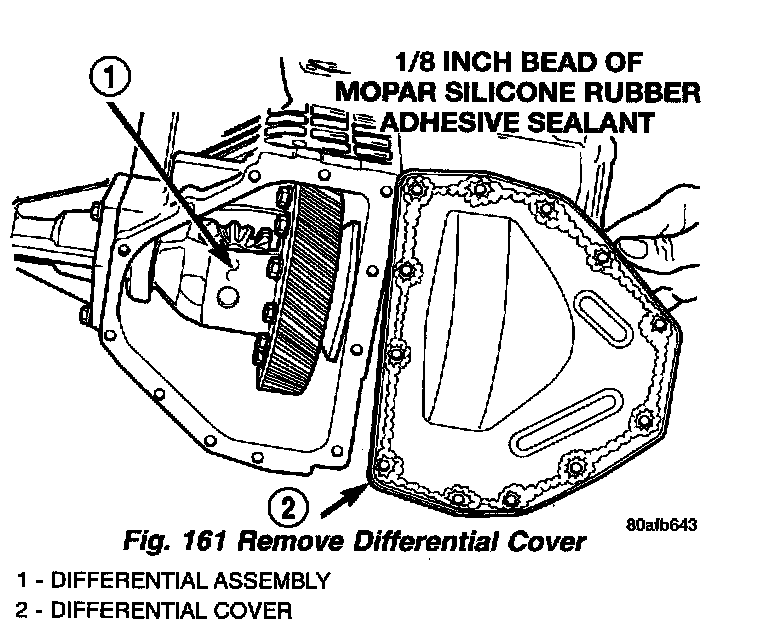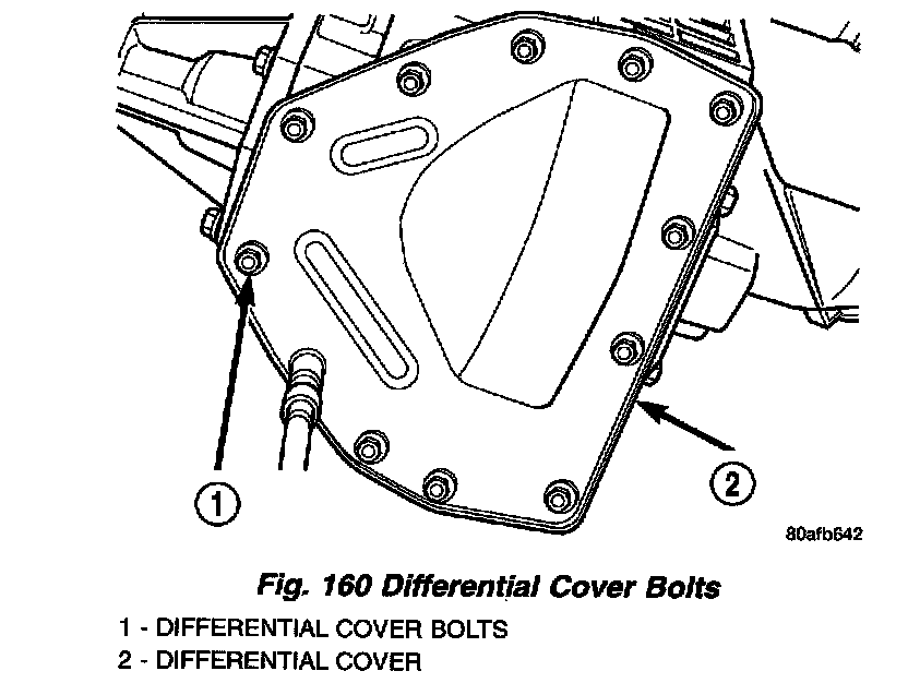 1. Remove the differential cover and bolts (Fig. 160) (Fig. 161).
