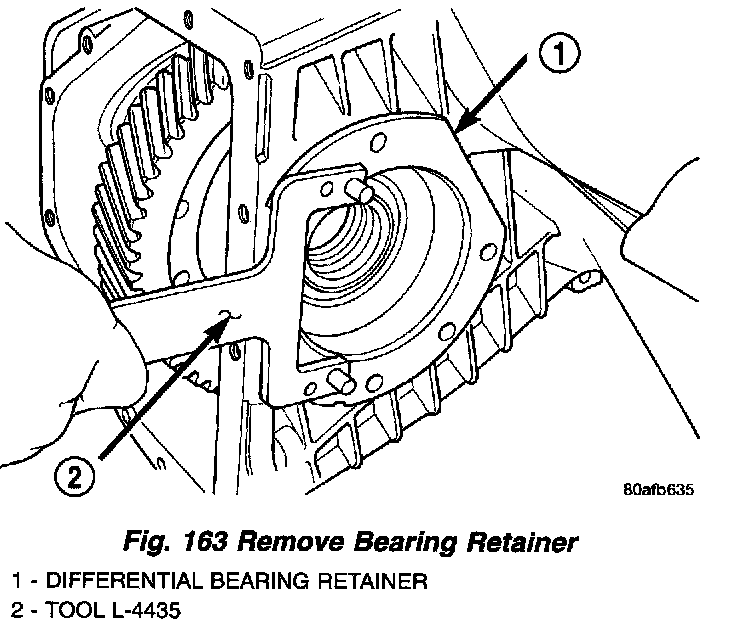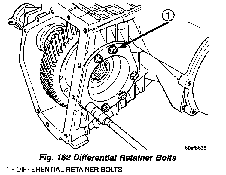 2. Remove the differential bearing retainer and bolts (Fig. 162) (Fig. 163).