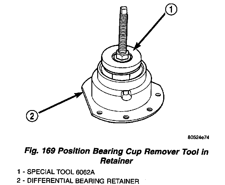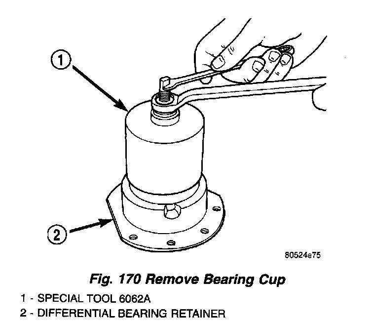 9. Using Miller Special Tool 6062A, remove the differential bearing race from the bearing retainer (Fig. 169) (Fig. 170).
