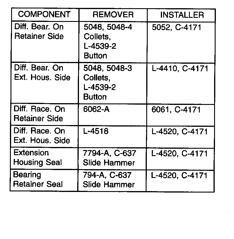 6. Use Miller Special Tool 5048, 6048-3 Collets, and L-4539-2 Button to remove the differential bearing cone on the extension housing side.