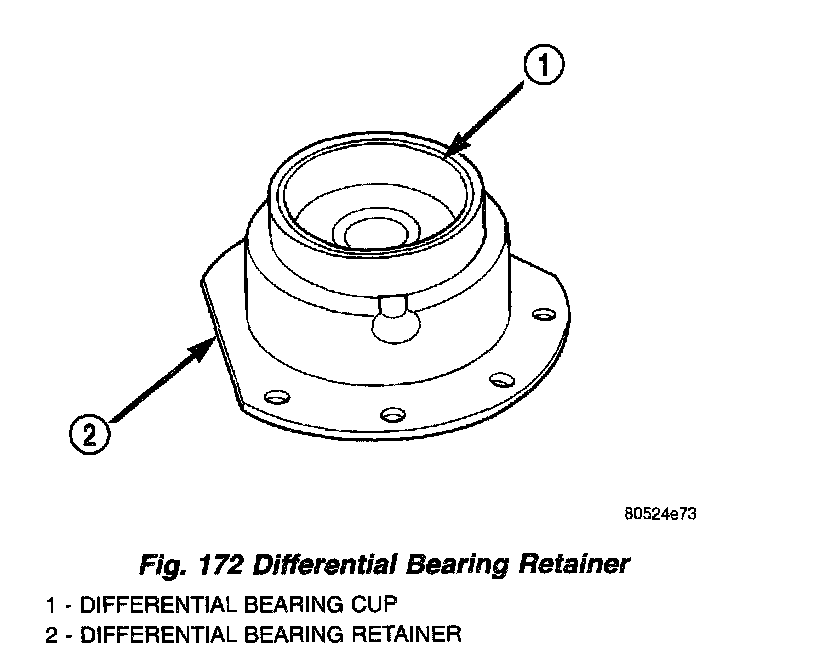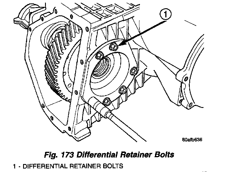 7. Install bearing retainer with a bead of Mopar Silicone Rubber Adhesive Sealant and torque bolts (Fig. 173) to 28 Nm (250 inch lbs.).