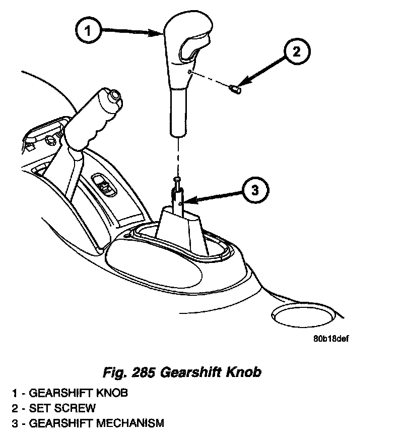 4. Re-install the gearshift knob set screw and knob (Fig. 285).