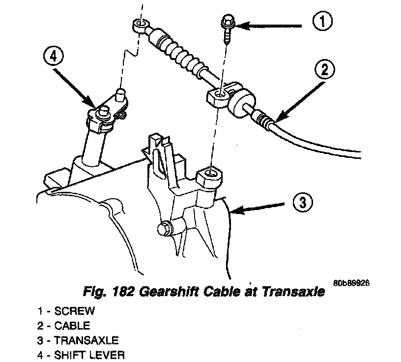 5. Remove the screw from the cable bracket at the transaxle (Fig. 182).