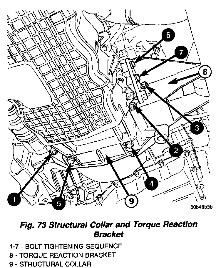 1. Perform the following steps for installing structural collar and torque reaction bracket. Refer to (Fig. 73):