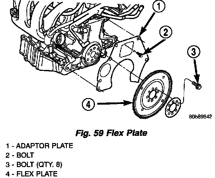 2. Remove the flex plate attaching bolts (Fig. 59).
