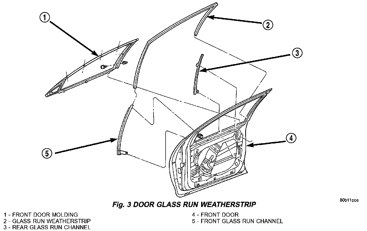 4. Pull run weatherstrip from window frame channel (Fig. 3).