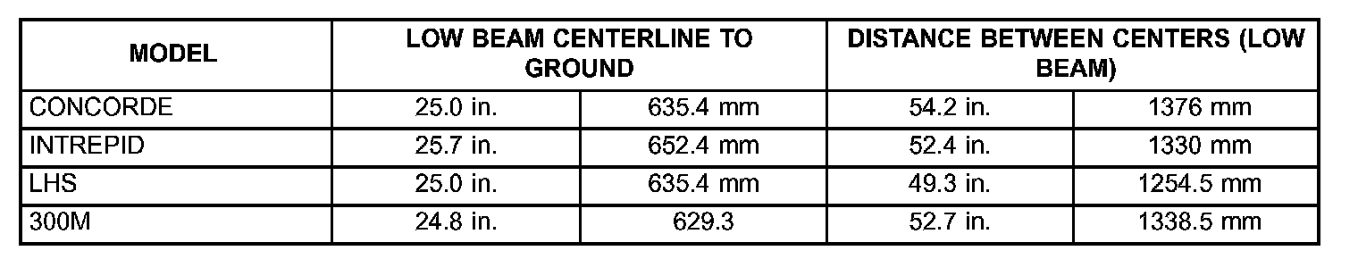 6. Measure the distance from the center of the headlamp bulbs to the floor, or refer to HEADLAMP UNIT ALIGNMENT MEASUREMENT TABLE. Transfer measurement to the alignment screen (with tape). Use this line for up/down adjustment reference. Individual vehicles may vary.