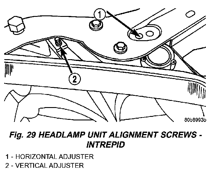 Fig. 29 Headlamp Unit Alignment Screws - Intrepid: