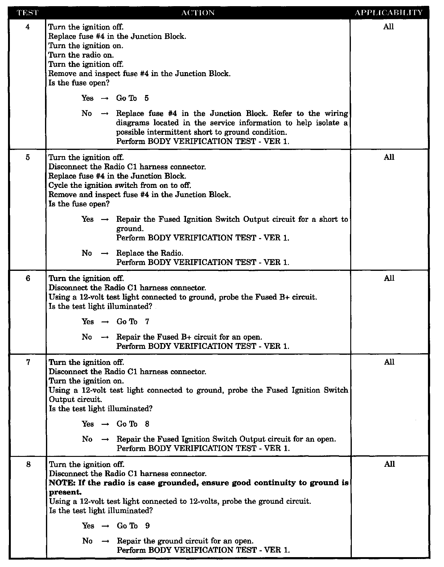- Radio - fused ignition switch output circuit shorted
