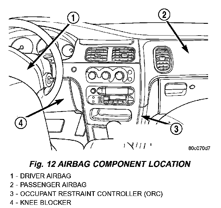 The accelerometer is located inside the ORC. The accelerometer provides confirmation of a crash, discriminating severity The ORC monitors the system to determine the system readiness. The ORC may store sufficient energy to deploy the airbags for only two minutes after the battery is disconnected. The ORC contains on-board diagnostics, and will illuminate the AIRBAG warning lamp on the cluster when a fault occurs. The warning equipment is tested for a few seconds every time the vehicle is started.