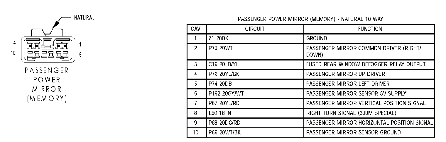 Passenger Power Mirror (Except Memory):