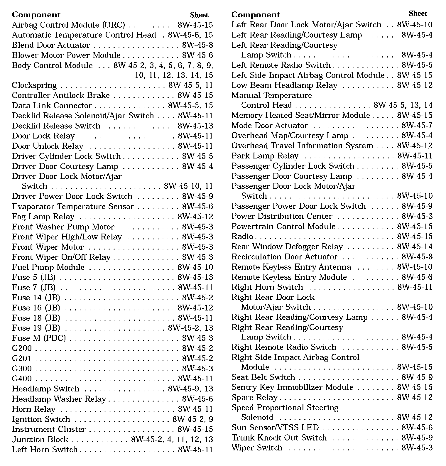 Sheet 8W-45-1 Group Index
