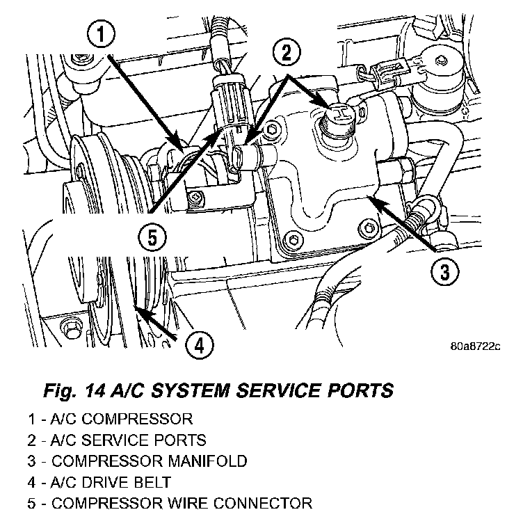 SERVICE PORT VALVE COREFig. 14 A/C System Service Ports - 3.2L/3.5L: