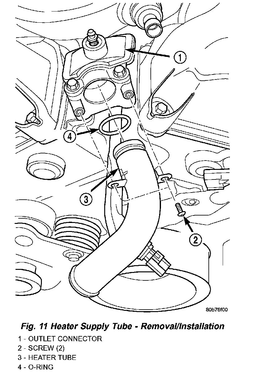 4. Attach heater tube to the retaining clip at rear of engine.