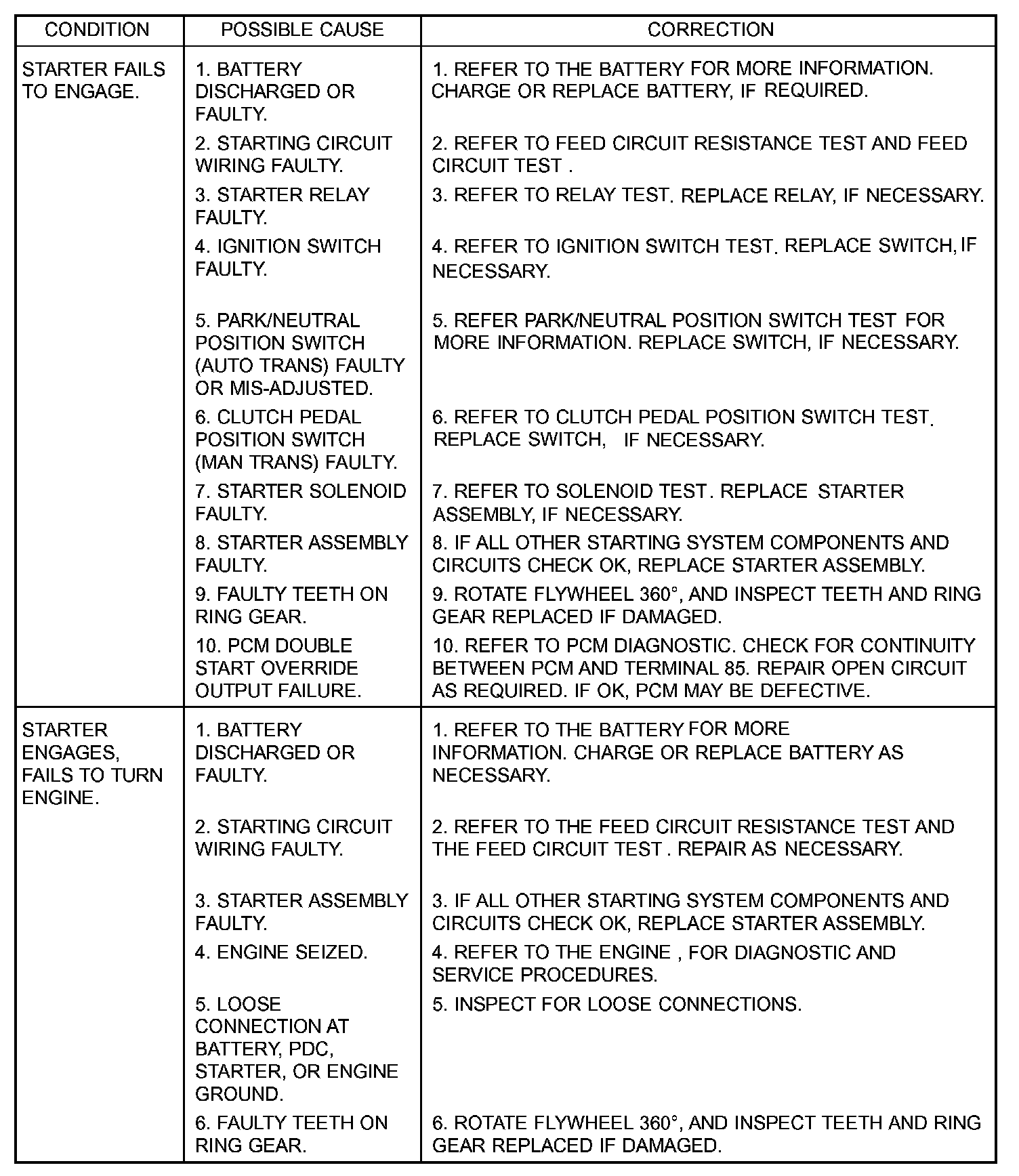 Before removing any unit from the starting system for repair or diagnosis, perform the following inspections: