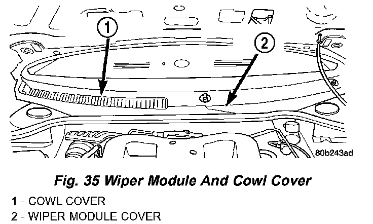19. Install the covers over the wiper module and the cowl. Install and securely tighten the attaching screws.