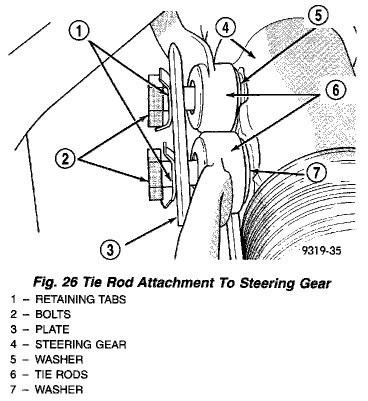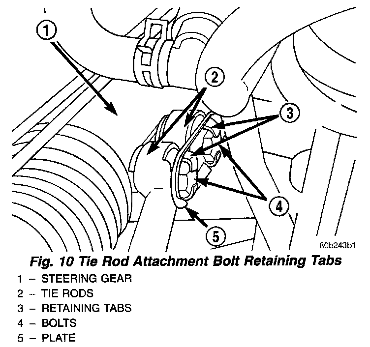 CAUTION: After tie rod attaching bolts are torqued, bend retaining plate tabs against heads of attaching bolts.