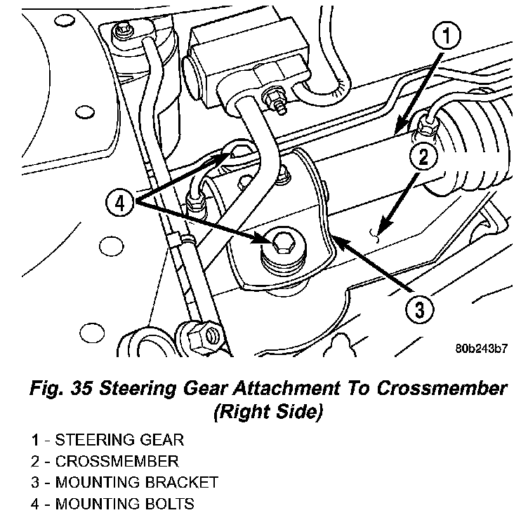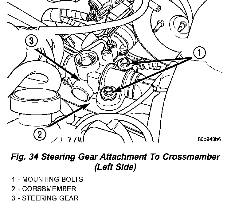 CAUTION: Tightening the steering gear to crossmember mounting bolts to the proper torque is very important.