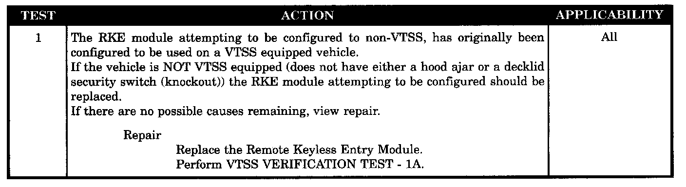 If the configuration of the module type has been previously set for VTSS, an attempt to set the module for non-VTSS will cause the new configuration to fail. This code should only appear if attempting to re-configure a used RKE module.