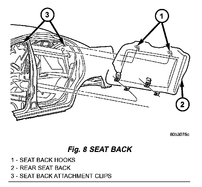 3. Push rear seat back upward to disengage hooks at top of seat back (Fig. 8).