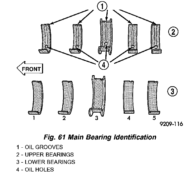 NOTE: The upper and lower main Bearing shells are Not interchangeable. The lower shells have a revised tab to prevent improper installation.