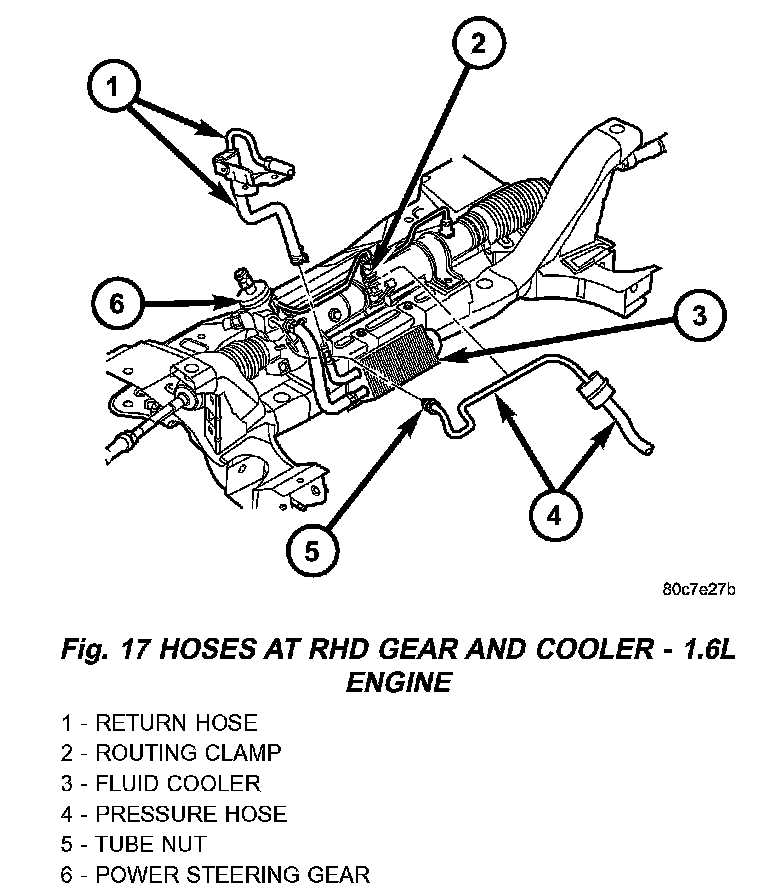 3. Back out the tube nut securing the power steering fluid pressure hose to the gear.