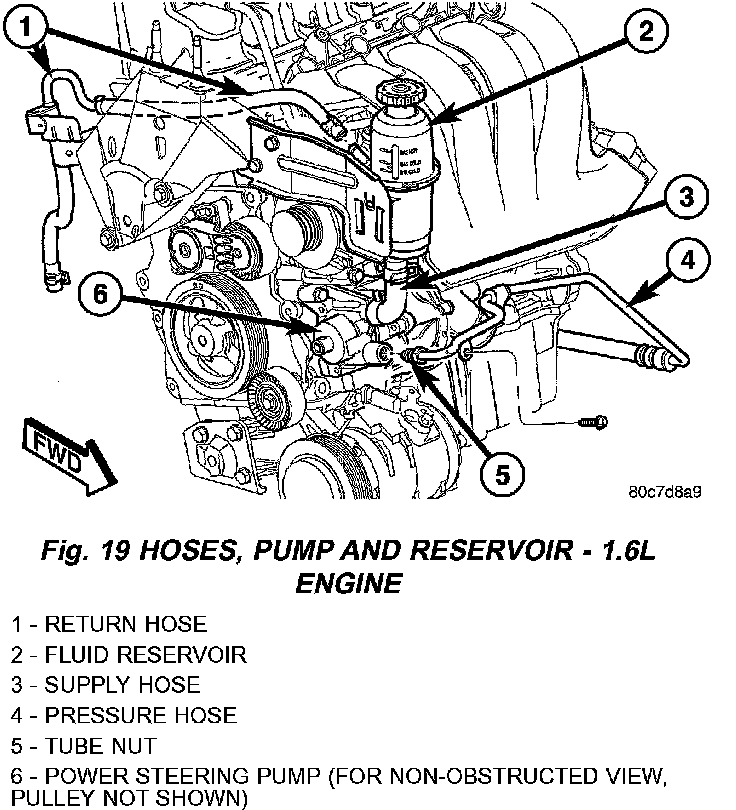 8. Back out the tube nut securing the power steering fluid pressure hose to the power steering pump.