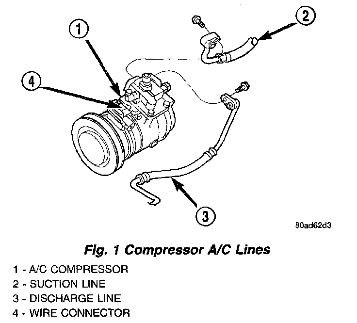 6. Remove refrigerant lines from compressor and disconnect electrical connector.