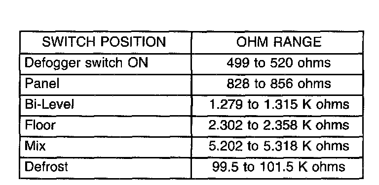 2. Using a ohmmeter, check leads between Pins 5 and 8 of the 8-Way connector. Turn the control module to each position shown on the Control Module Test Chart below CONTROL MODULE TEST CHART . The resistance reading should be within the specifications shown. If not OK, replace the control module. If OK, check: