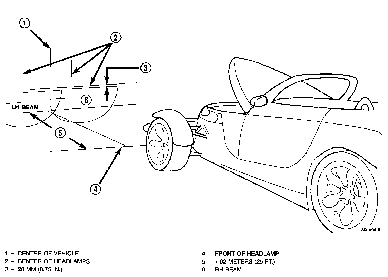 1. Position vehicle on a level surface perpendicular to a flat wall 7.62 meters (25 ft.) away from front of headlamp lens.