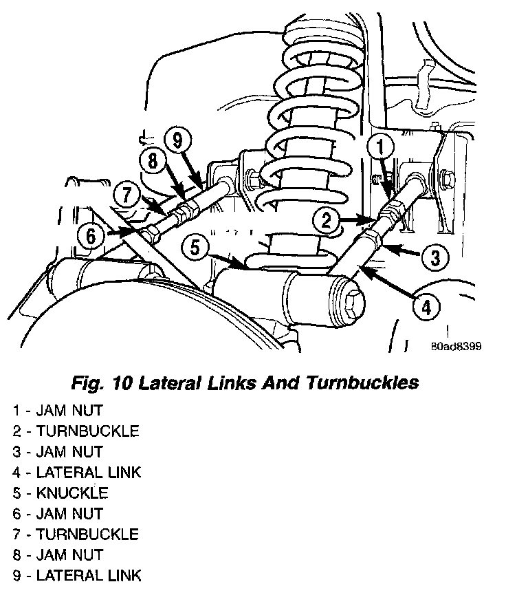 1. Loosen the jam nuts at the rear lateral links as necessary.