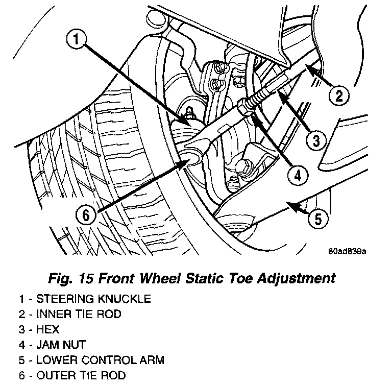 NOTE: When performing a wheel alignment, it is best to set the rear alignment first before proceeding to the front. If the rear wheel alignment is out of specifications, proceed to Rear Camber And Toe.
