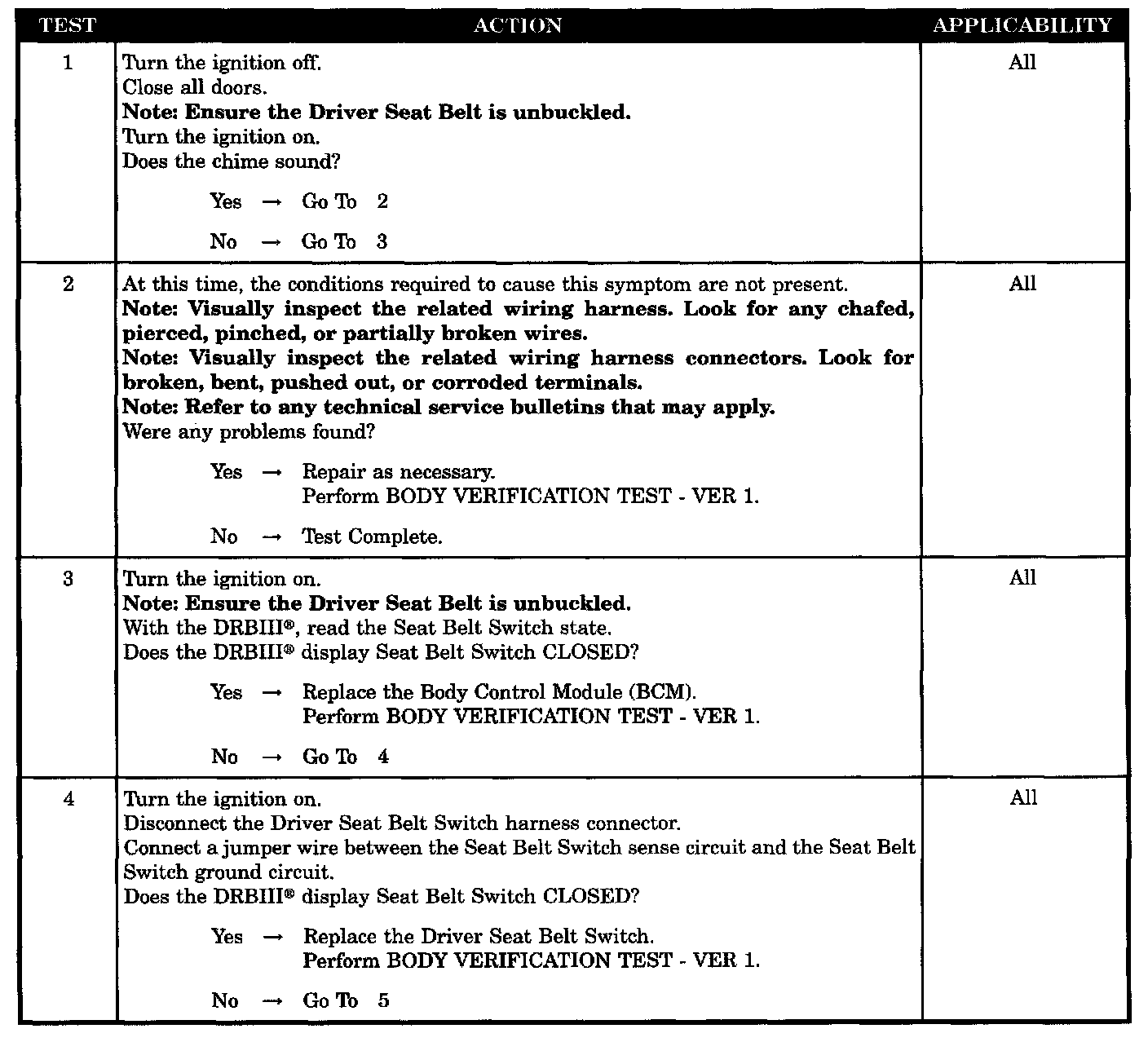 Chime Inoperative With Drivers Seat Belt Unfastened
