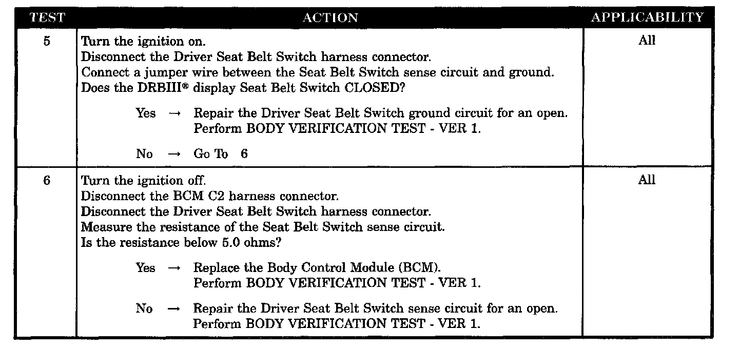 CHIME INOPERATIVE WITH DRIVER SEAT BELT UNFASTENED