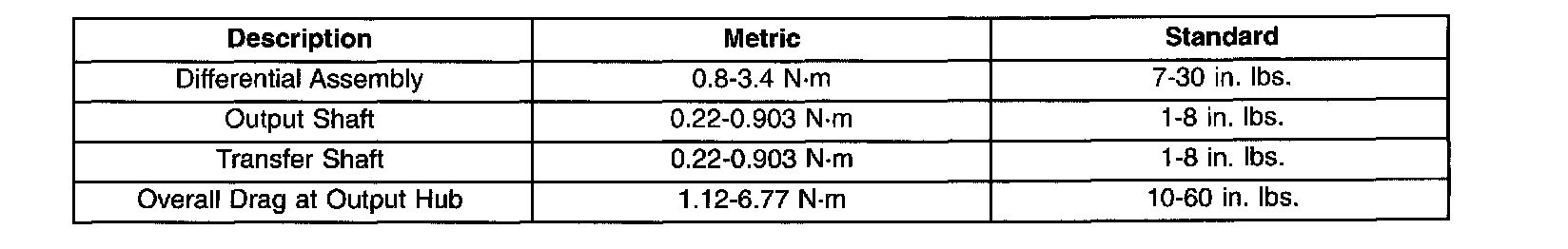 BEARING PRELOAD (DRAG TORQUE)