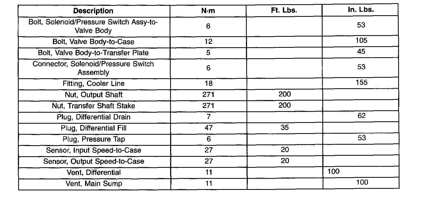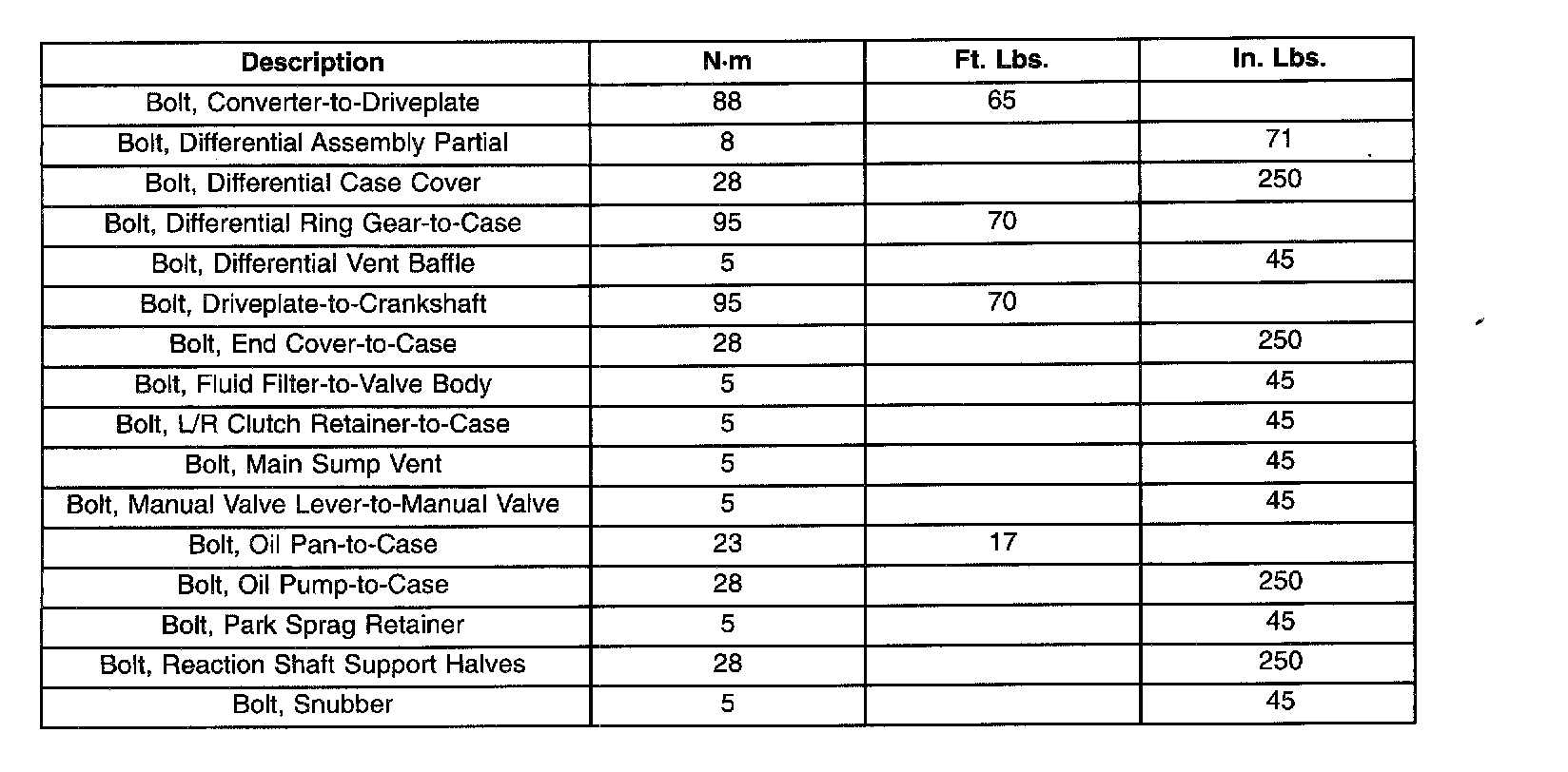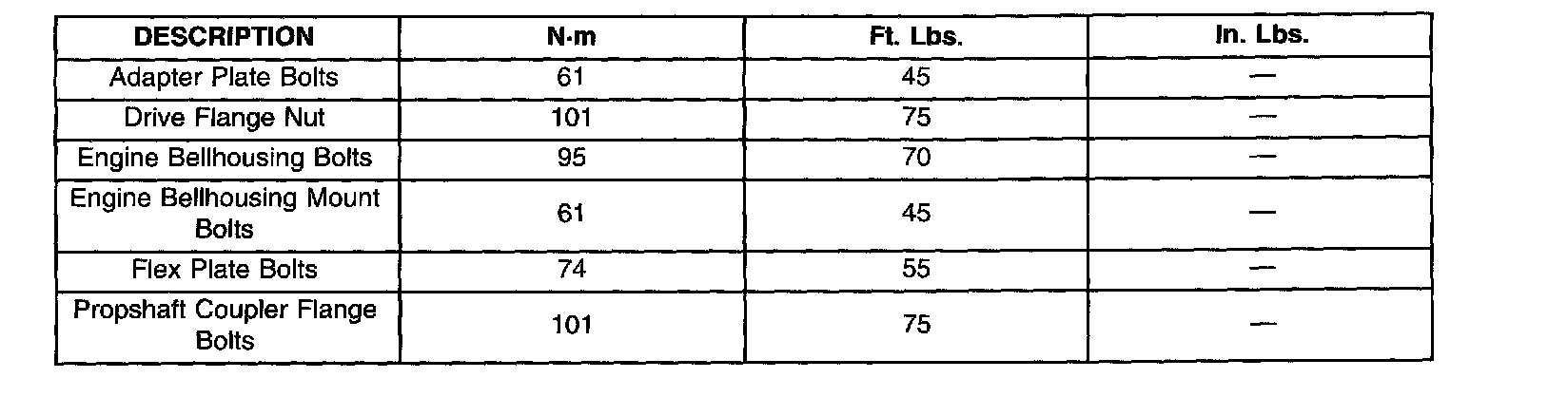 TORQUE SPECIFICATIONS